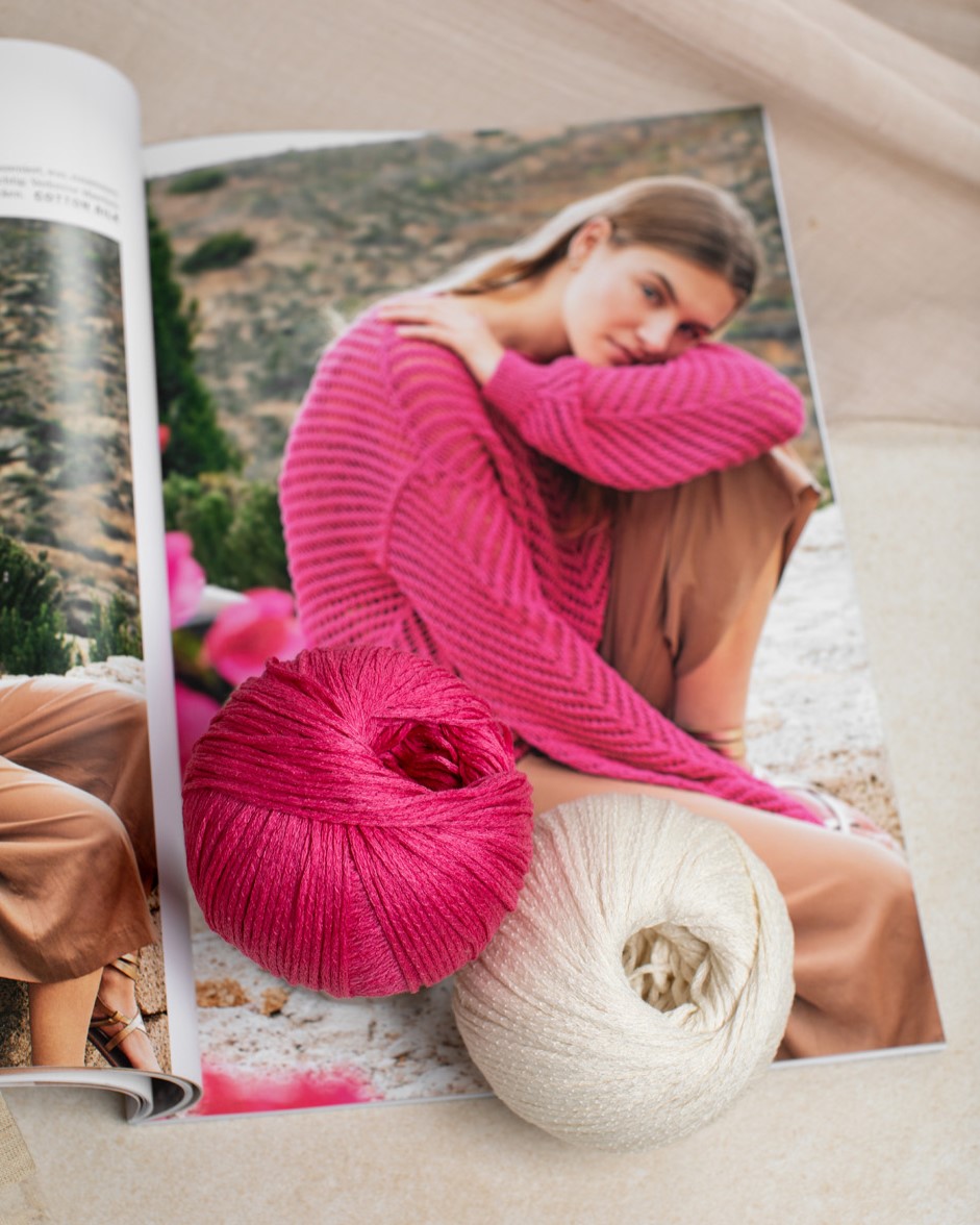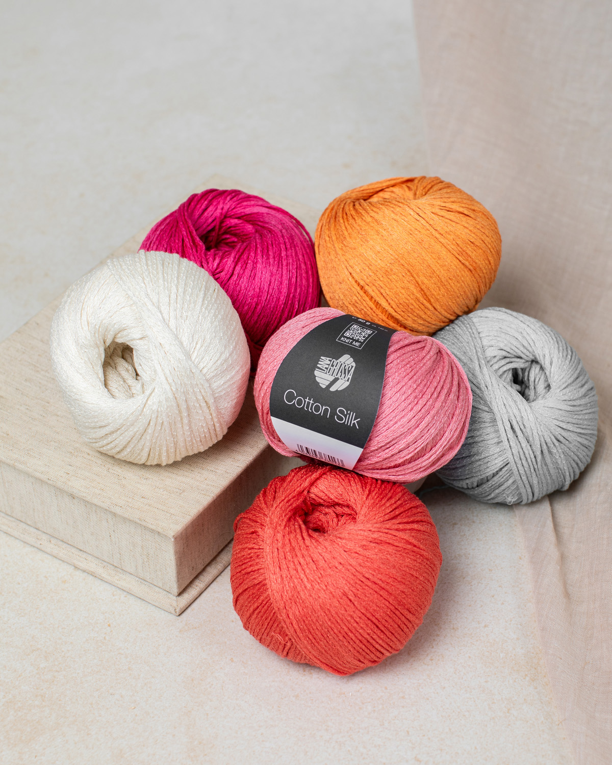 Cotton Silk is an exquisite summer yarn with natural elegance. The high-quality blend of cotton and silk gives the yarn a soft touch, a subtle sheen, and a pleasantly smooth stitch pattern. It is breathable and temperature-regulating—a perfect choice for those who love understated naturalness with a touch of luxury.