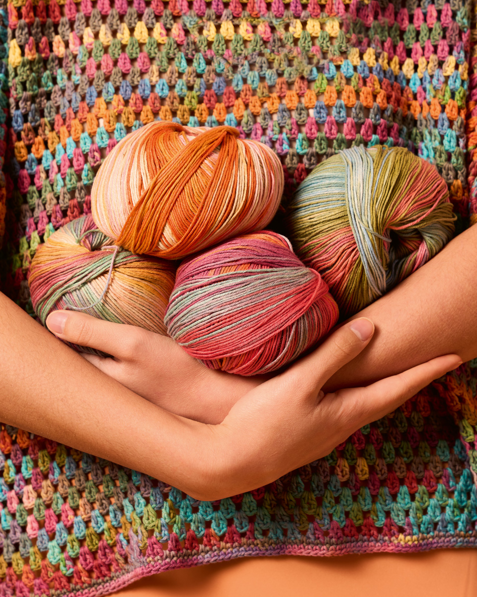 Gomitolo Alga captivates with vibrant color gradients inspired by the diversity of nature. The harmoniously coordinated shades blend seamlessly into one another, giving every knitted piece a unique and modern look.