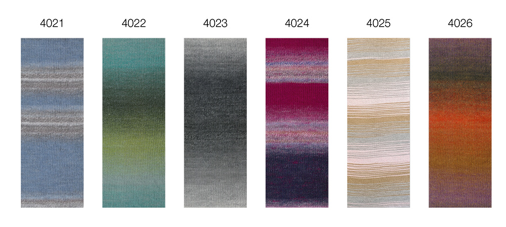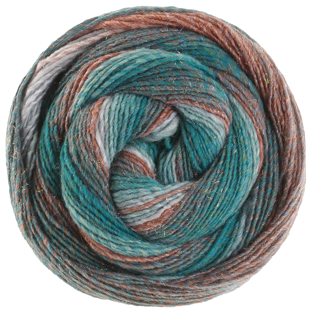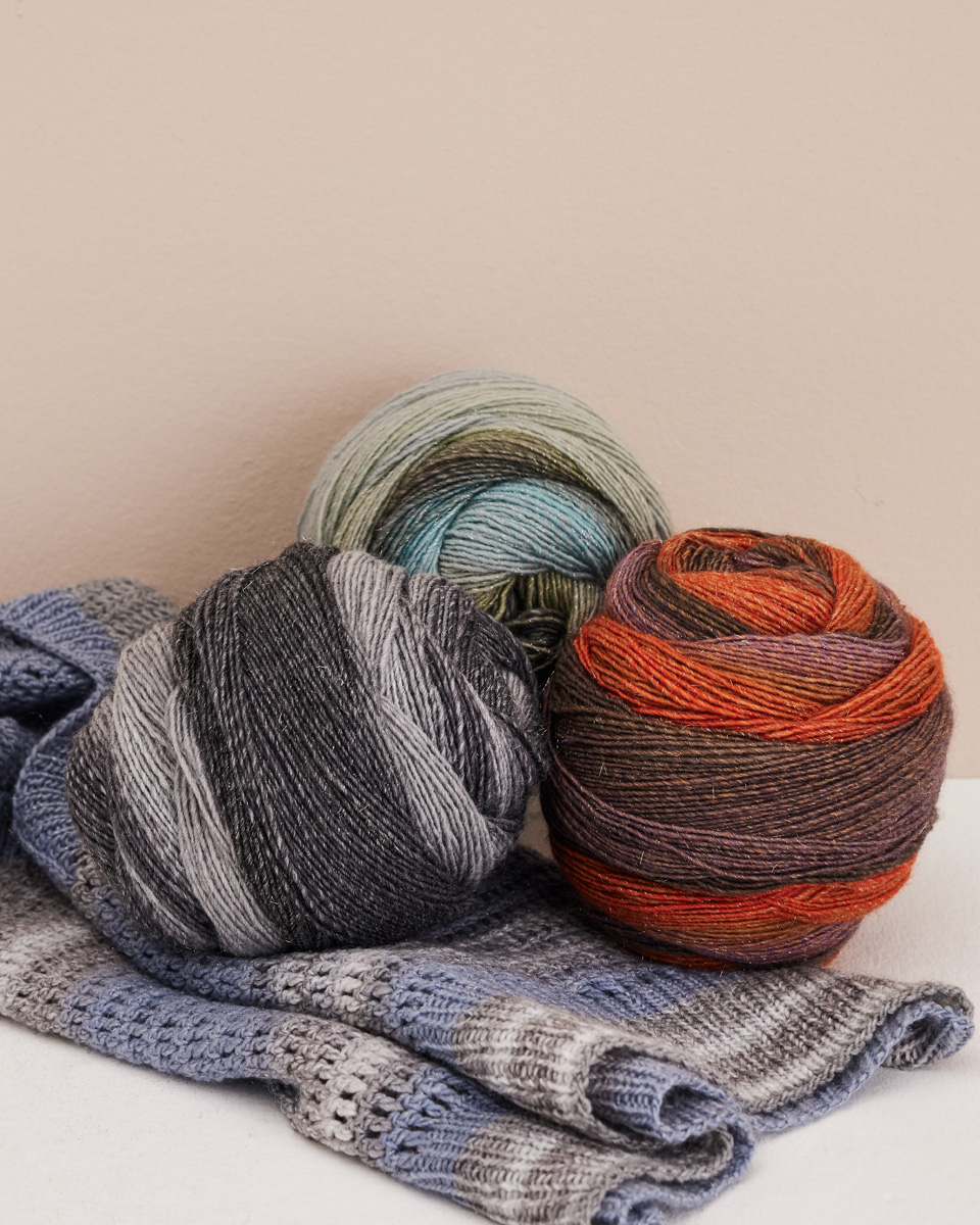 Single-ply yarn in variegated colors and a subtle Lurex effect