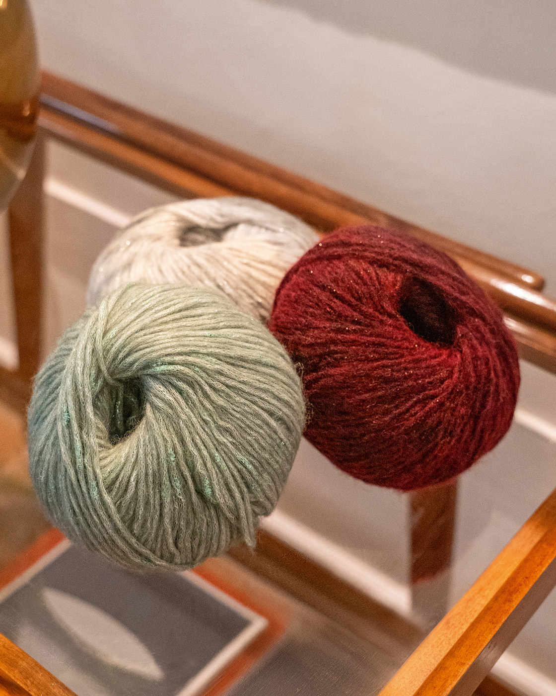 Unique alpaca and Merino wool blend yarn with a metallic shine.