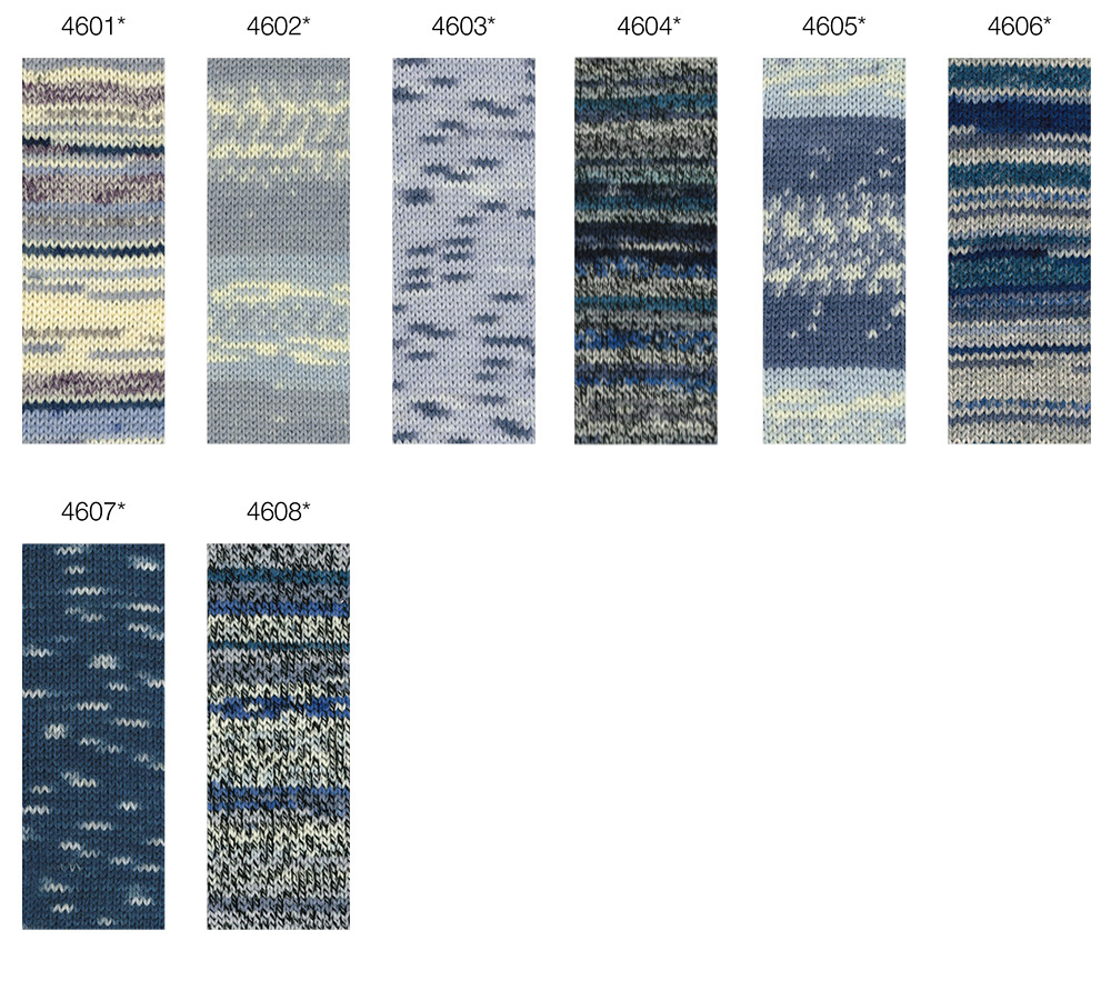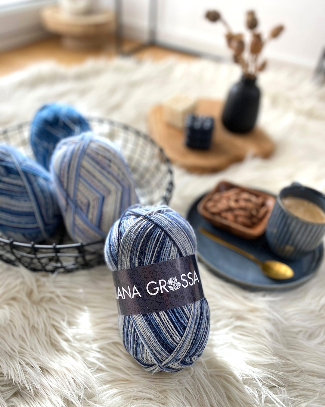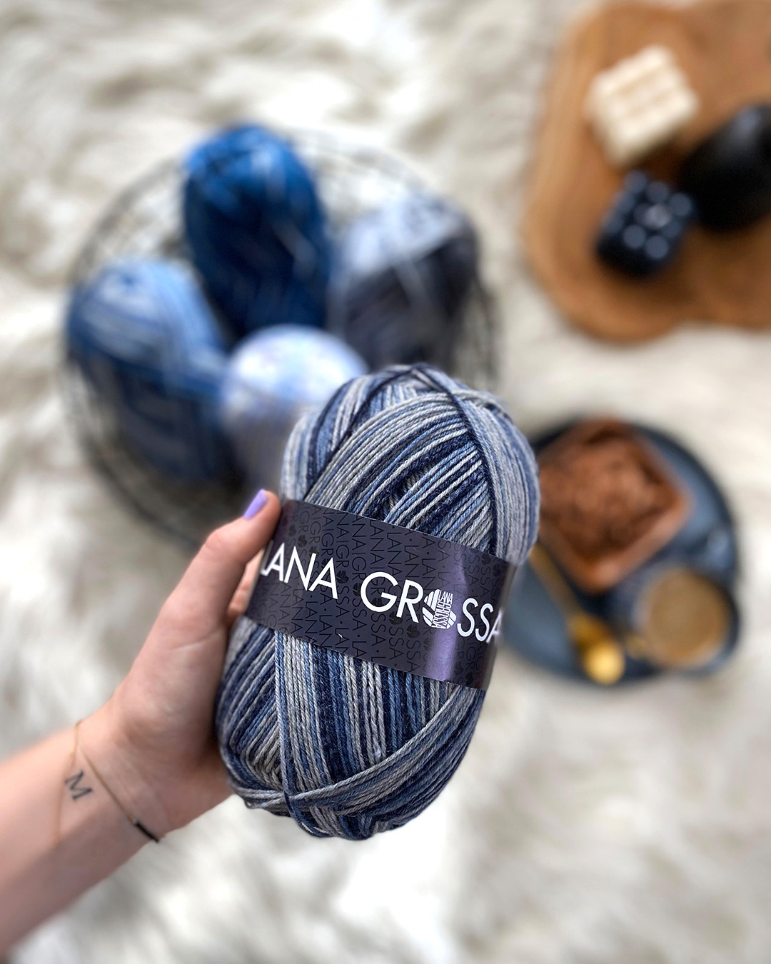 Lana Grossa Meilenweit 100 Blue Denim Mix combines trendy denim shades with proven yarn quality.