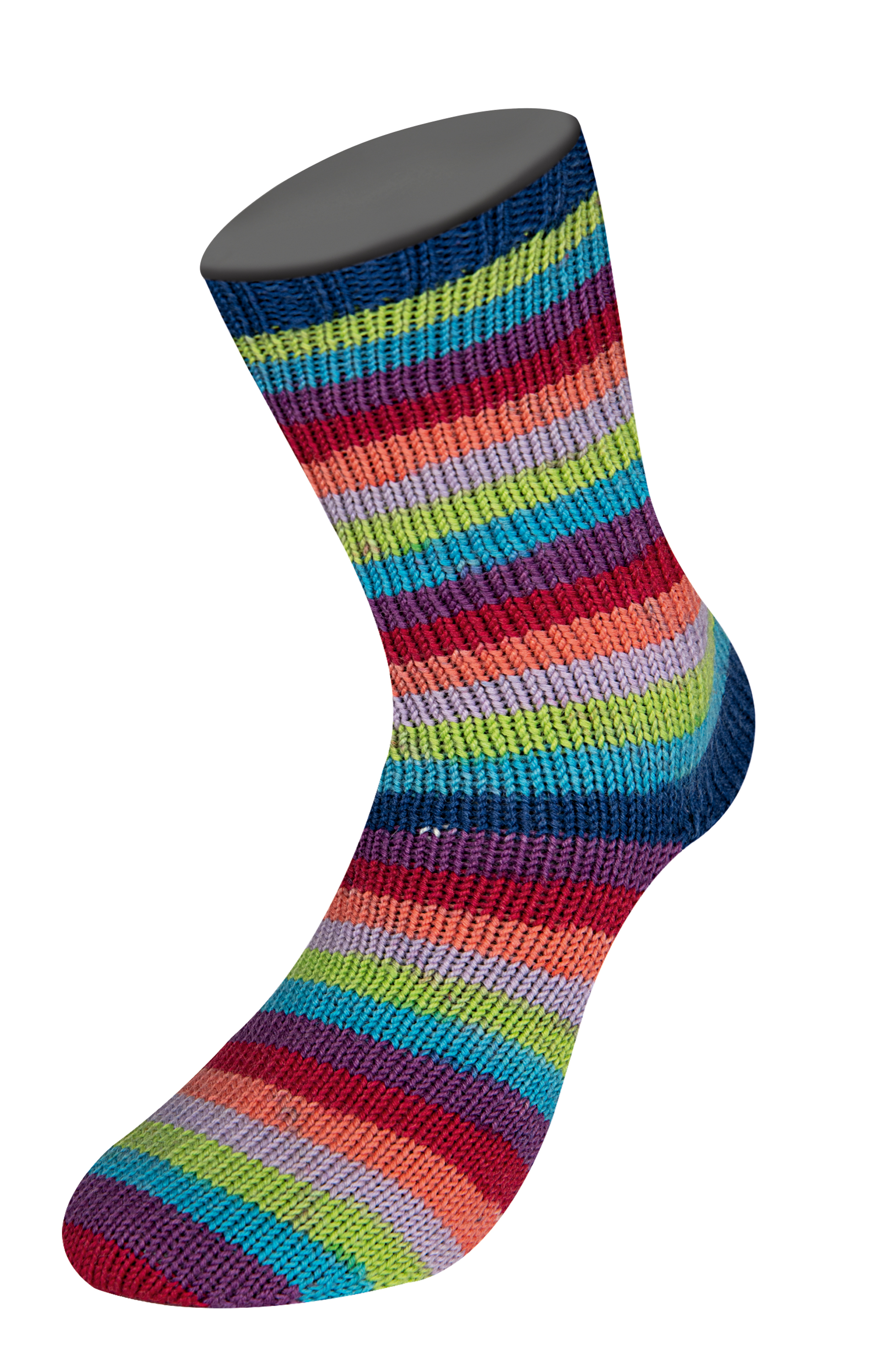 Each ball contains exactly the same color gradient twice, the beginning and the transition are marked with a contrast thread, so you get two identical socks without searching and unwinding; with quick start