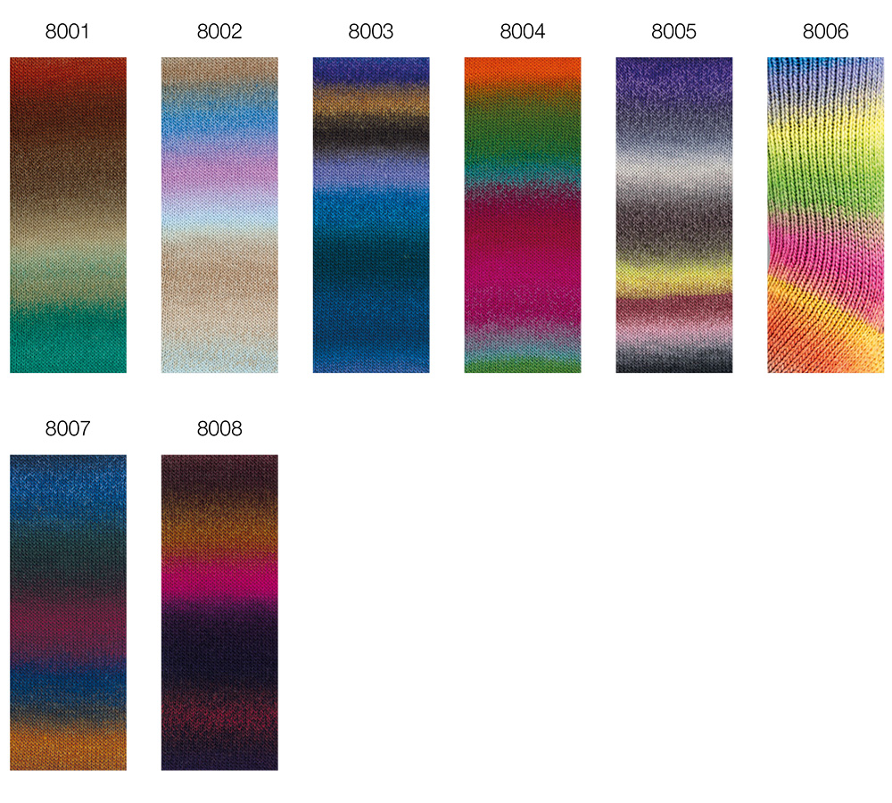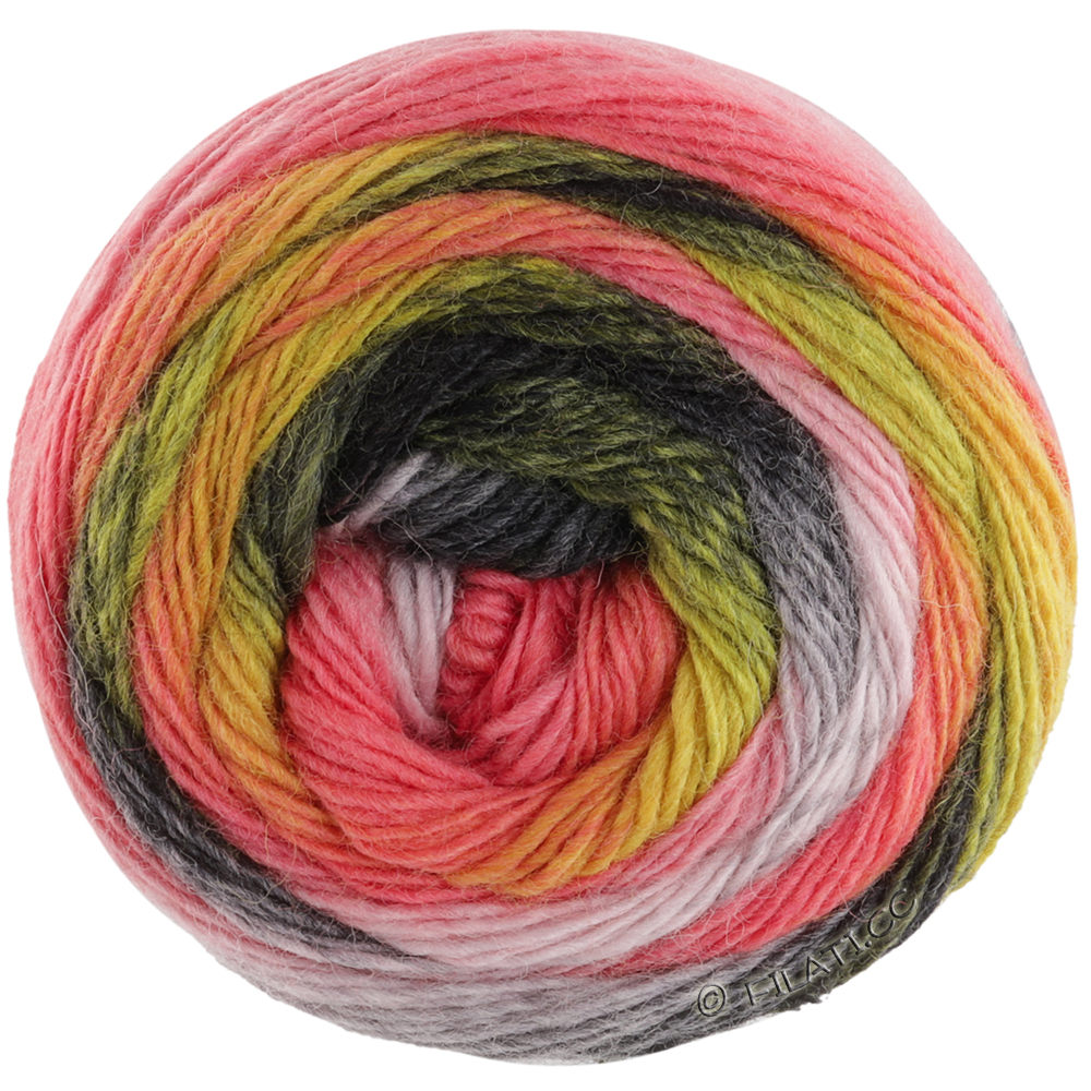Lana Grossa Meilenweit 100 Color Mix Multi impresses with vibrant multicolor gradients and reliable quality. This 4-ply sock yarn made of virgin wool and polyamide is soft, durable, and easy-care – perfect for cheerful, colorful socks.
