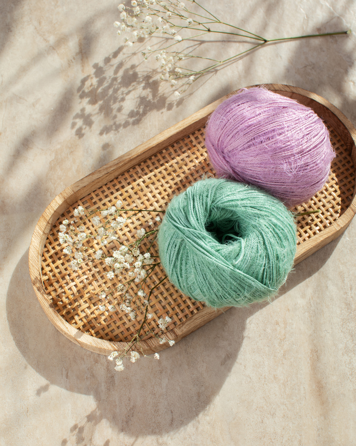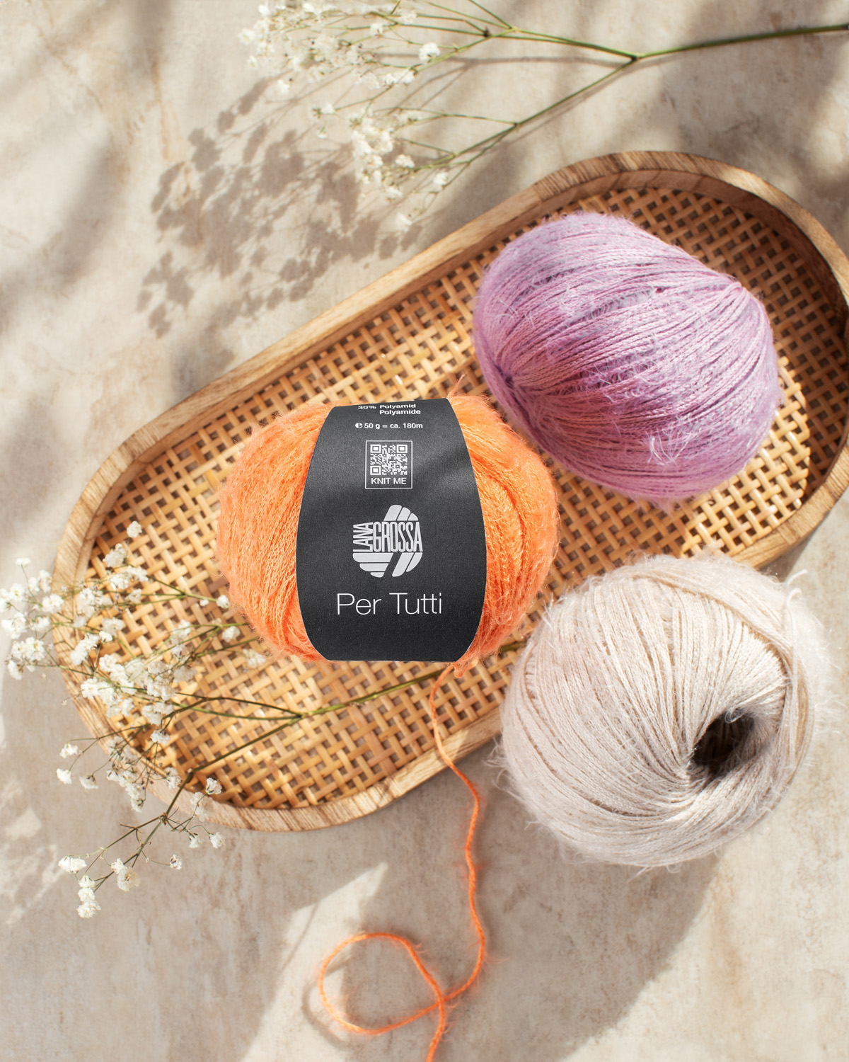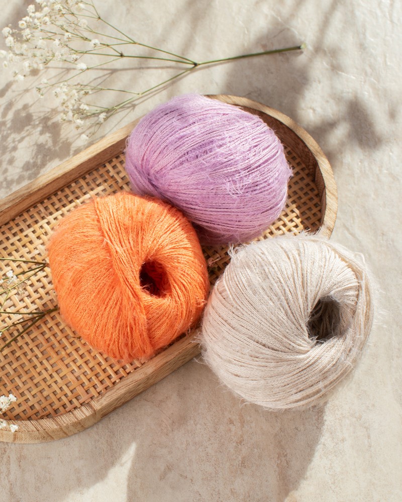 Per Tutti is a lightweight cotton yarn with an intriguing texture and modern character. Smooth, subtly shiny sections alternate with soft, fluffy segments—creating a lively stitch pattern and an especially pleasant touch.