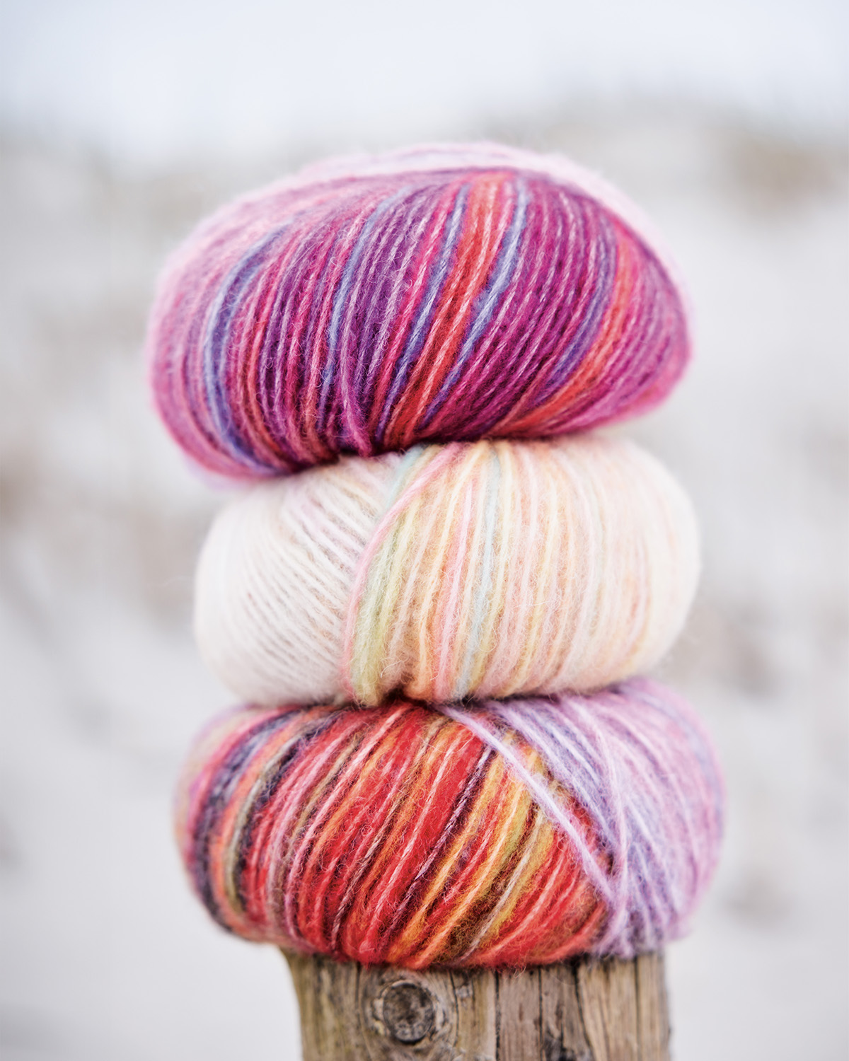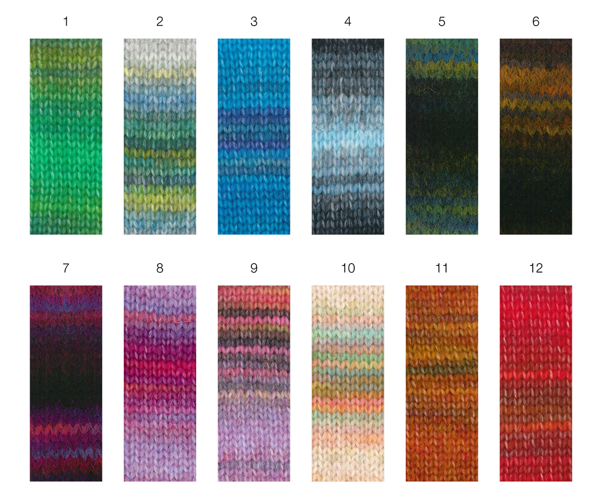Soffilo in baby alpaca and Merino wool in variegated colors.