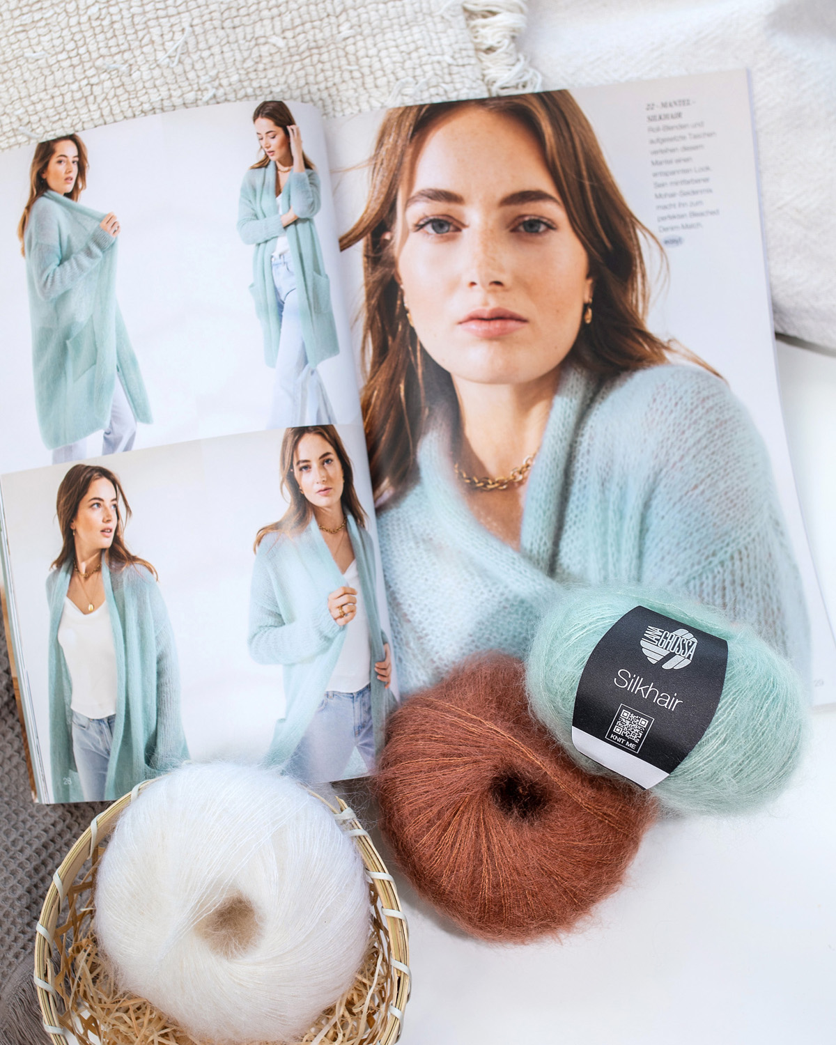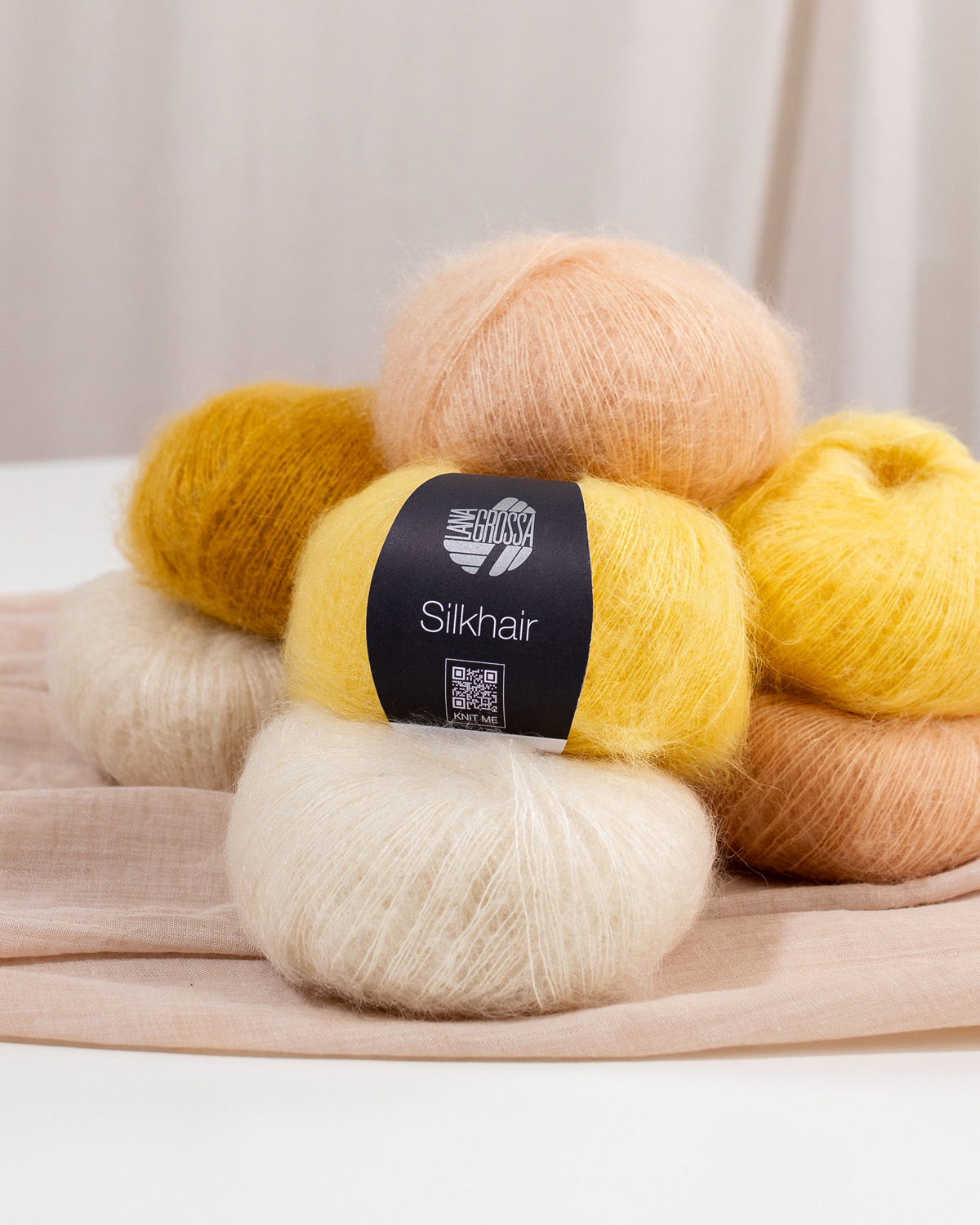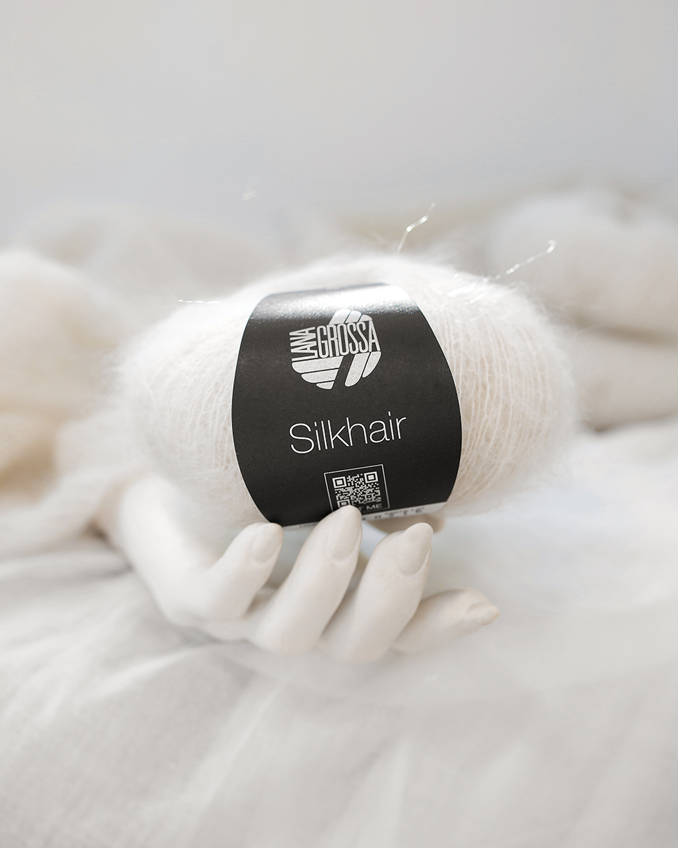 Silkhair is Lana Grossa’s beloved lace yarn – a luxurious blend of superkid mohair and silk, admired for its lightness, subtle sheen, and elegant fluff. Perfect for delicate shawls, sweaters, airy cardigans, or as a companion yarn for refined effects. Knit it solo for a transparent, airy result or double-stranded for extra volume – Silkhair lends every project an exclusive, feminine touch.