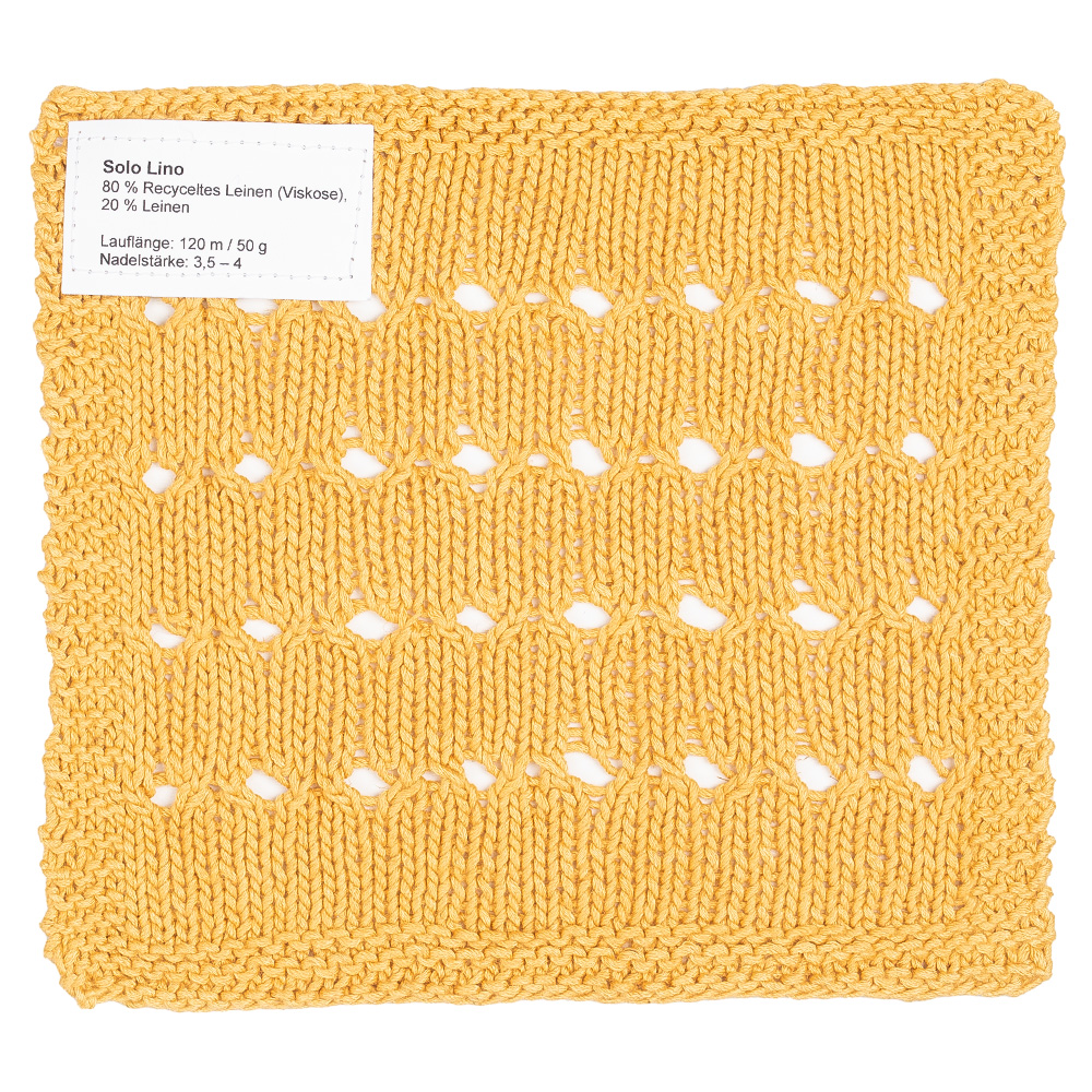 Solo Lino is an elegantly shiny summer yarn made from 100% linen fibers, featuring a recycled linen core wrapped in new linen. The yarn has a smooth, cool touch and a fluid drape – perfect for elegant summer garments such as tops, sweaters, jackets, or shawls. Solo Lino combines sustainability with wearing comfort and is ideal for anyone who appreciates natural materials with a stylish look.