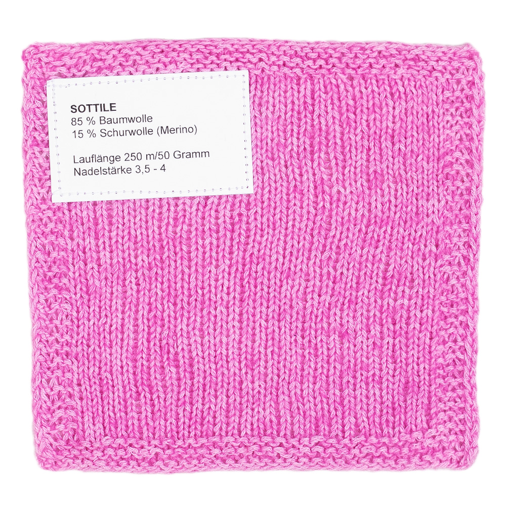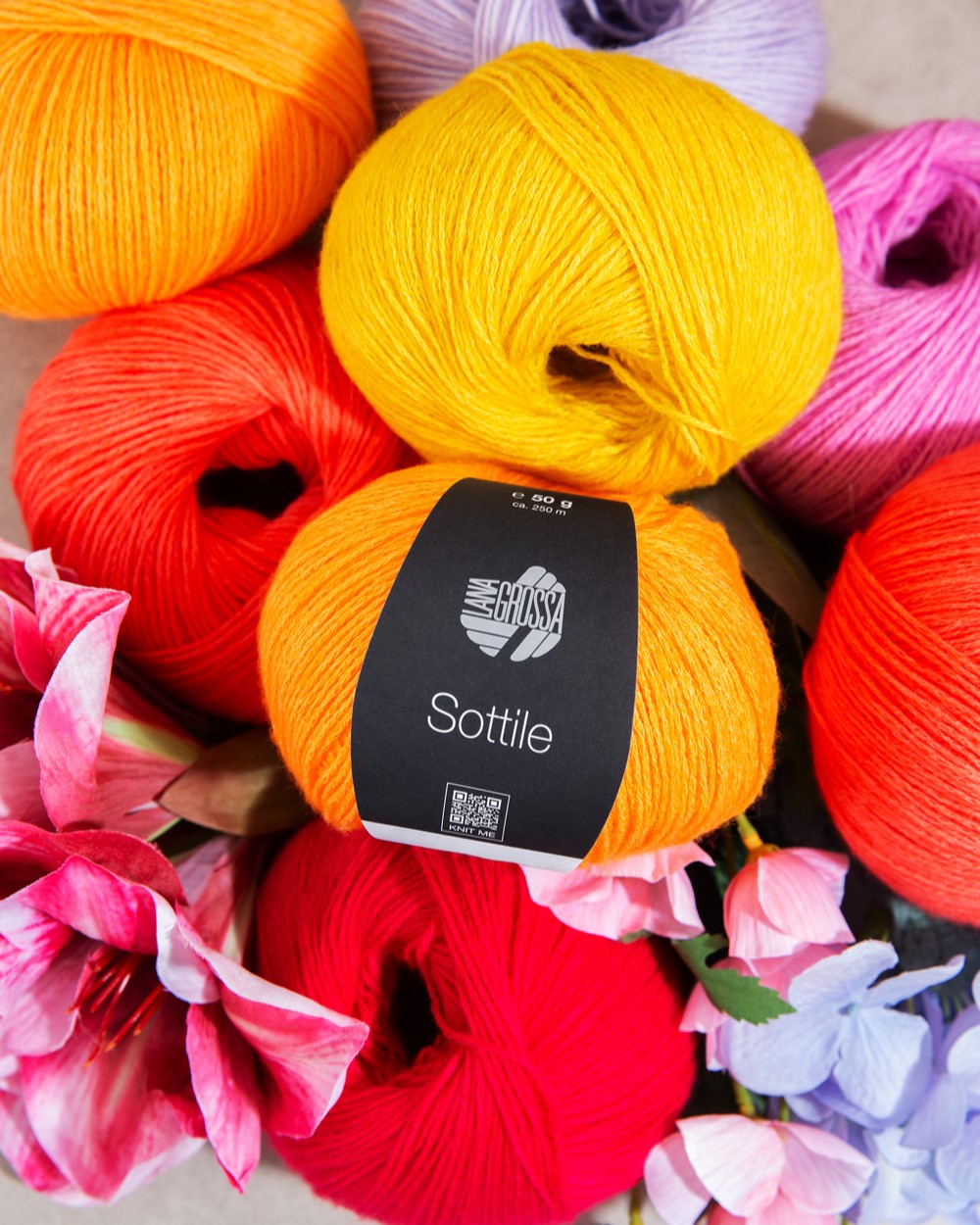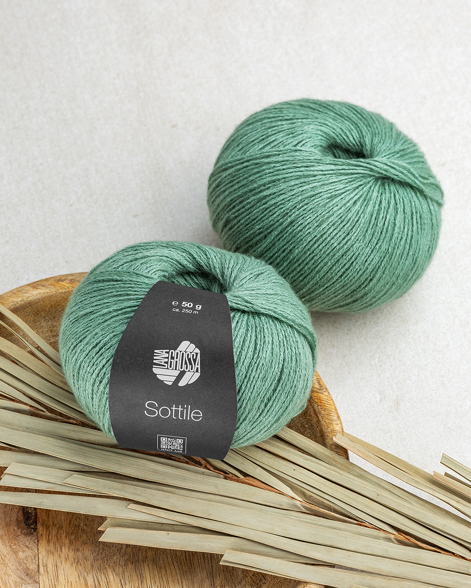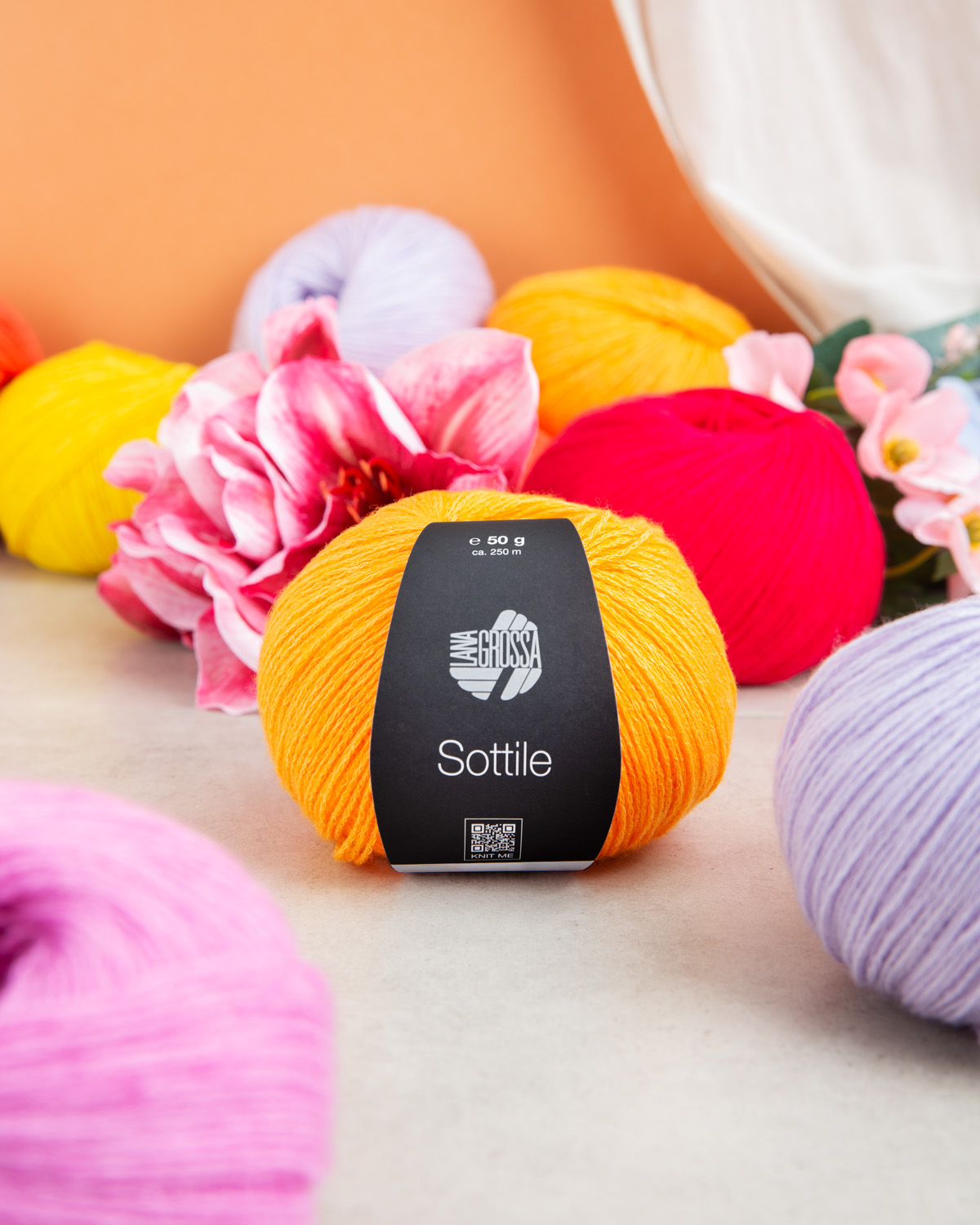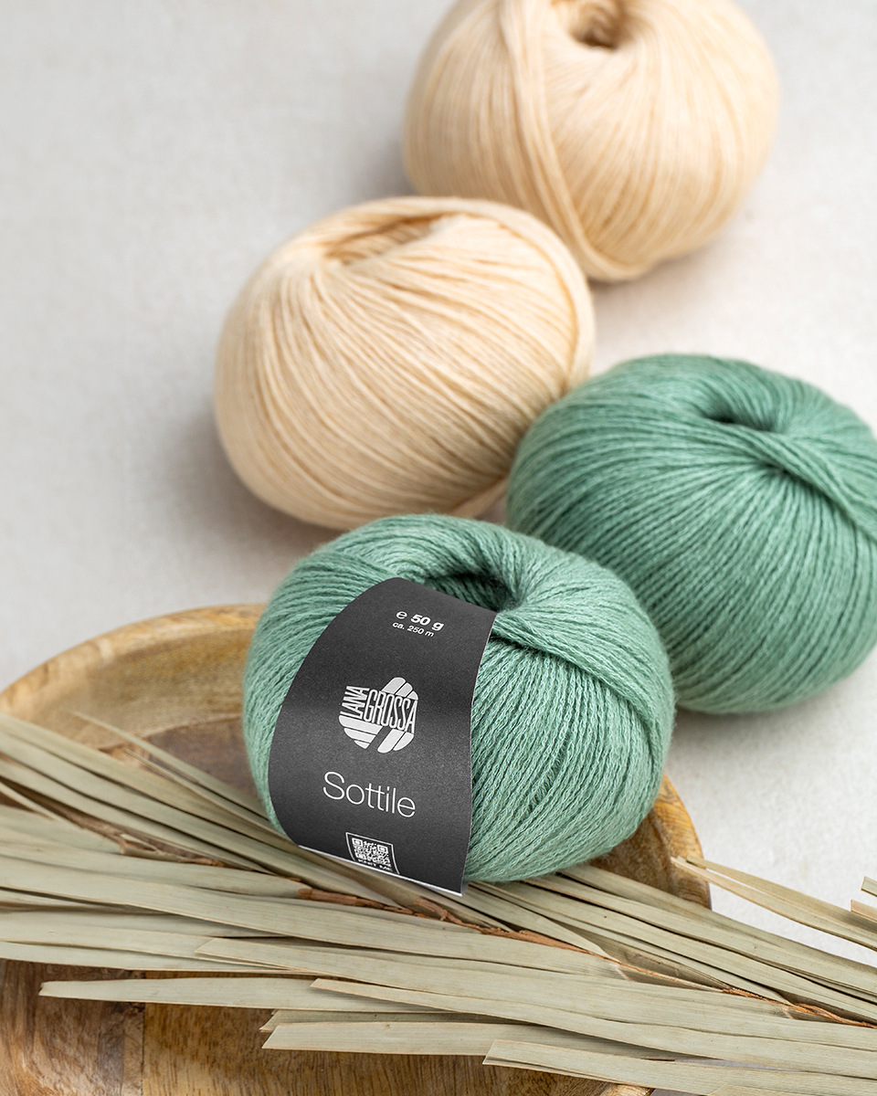 Sottile is a fine, smooth summer yarn made from a high-quality cotton blend. It impresses with its cool touch, even stitch definition, and natural, elegant appearance.
